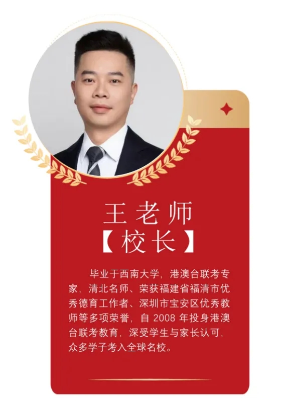 拥有 40 余位优秀教师,名师核心团队连续 24 年深耕港澳台联考教育教研,教师教龄 10 年以上,学校已培育超 10000 余名优秀毕业生。